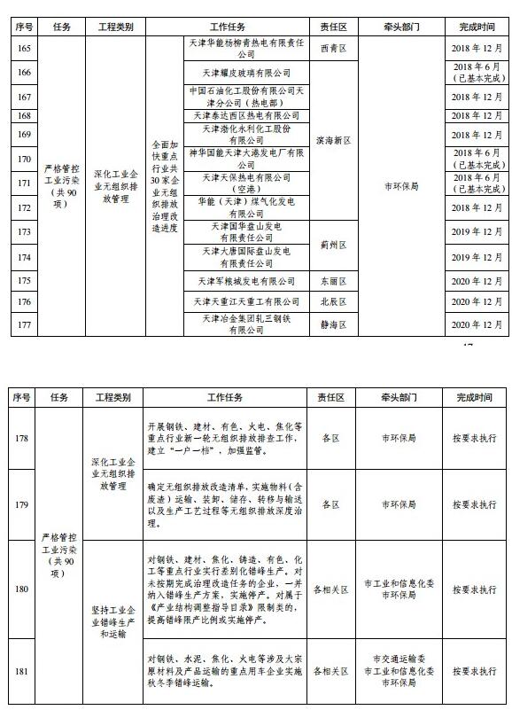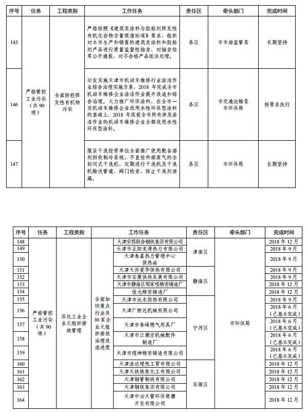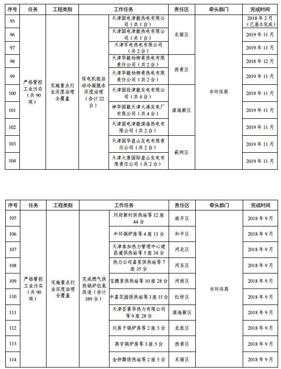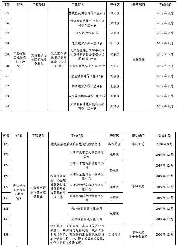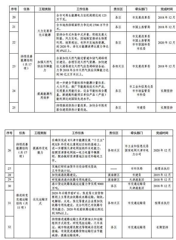 天津市藍天保衛(wèi)戰(zhàn)三年計劃重點工程任務分解表
