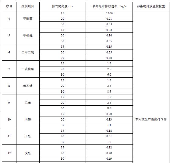 4.2 污染物排放限值與周界濃度限值