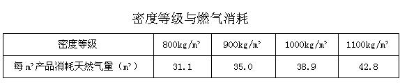 眾所周知產(chǎn)品密度等級不同,生產(chǎn)能耗不同。如天然氣熱值為9000千卡/m3,生產(chǎn)不同密度產(chǎn)品,隧道窯焙燒消耗的燃?xì)饬坑嬎闳缦隆?/P>