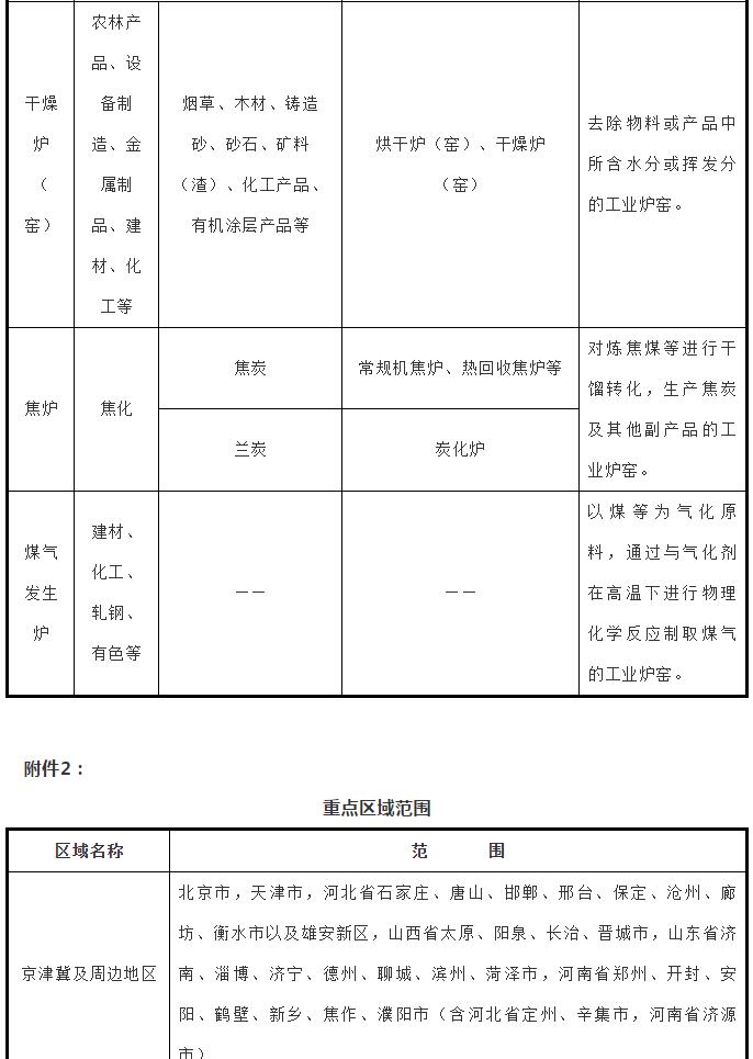 (一)主要目標(biāo)。到2020年,完善工業(yè)爐窯大氣污染綜合治理管理體系,推進(jìn)工業(yè)爐窯全面達(dá)標(biāo)排放,京津冀及周邊地區(qū)、長(zhǎng)三角地區(qū)、汾渭平原等大氣污染防治重點(diǎn)區(qū)域(以下簡(jiǎn)稱重點(diǎn)區(qū)域,范圍見(jiàn)附件2)工業(yè)爐窯裝備和污染治理水平明顯提高,實(shí)現(xiàn)工業(yè)行業(yè)二氧化硫、氮氧化物、顆粒物等污染物排放進(jìn)一步下降,促進(jìn)鋼鐵、建材等重點(diǎn)行業(yè)二氧化碳排放總量得到有效控制,推動(dòng)環(huán)境空氣質(zhì)量持續(xù)改善和產(chǎn)業(yè)高質(zhì)量發(fā)展。