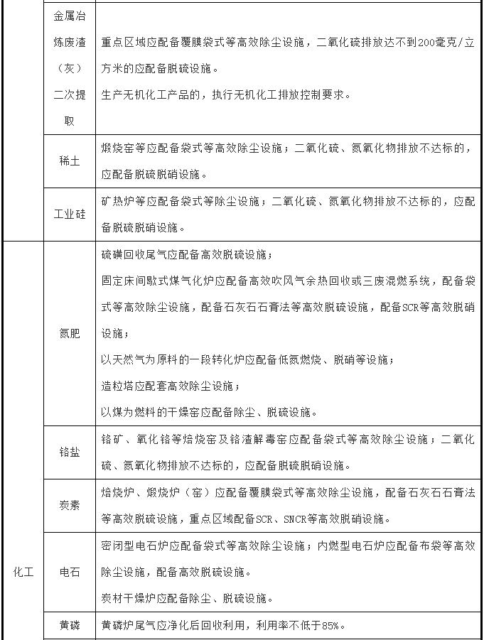 暫未制訂行業(yè)排放標(biāo)準(zhǔn)的工業(yè)爐窯,包括鑄造,日用玻璃,玻璃纖維、耐火材料、石灰、礦物棉等建材行業(yè),鎢、工業(yè)硅、金屬冶煉廢渣(灰)二次提取等有色金屬行業(yè),氮肥、電石、無(wú)機(jī)磷、活性炭等化工行業(yè),應(yīng)參照相關(guān)行業(yè)已出臺(tái)的標(biāo)準(zhǔn),全面加大污染治理力度(見(jiàn)附件4),鑄造行業(yè)燒結(jié)、高爐工序污染排放控制按照鋼鐵行業(yè)相關(guān)標(biāo)準(zhǔn)要求執(zhí)行;重點(diǎn)區(qū)域原則上按照顆粒物、二氧化硫、氮氧化物排放限值分別不高于30、200、300毫克/立方米實(shí)施改造,其中,日用玻璃、玻璃棉氮氧化物排放限值不高于400毫克/立方米;已制定更嚴(yán)格地方排放標(biāo)準(zhǔn)的地區(qū),執(zhí)行地方排放標(biāo)準(zhǔn)。