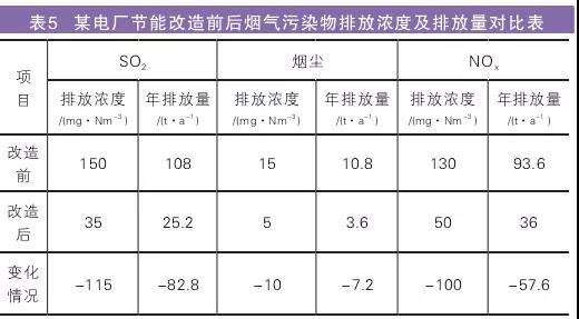 根據(jù)改造前后各項(xiàng)數(shù)據(jù)對(duì)比可知,該工程實(shí)施改造后,電廠煙氣污染物排放濃度將得到大大削減,各項(xiàng)指標(biāo)均達(dá)到超低排放標(biāo)準(zhǔn);SO2、煙塵、NOx年排放量分別減少82.8t/a、7.2t/a、63t/a,環(huán)境效益十分明顯。