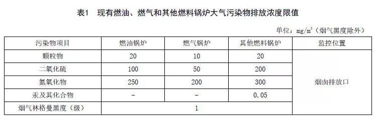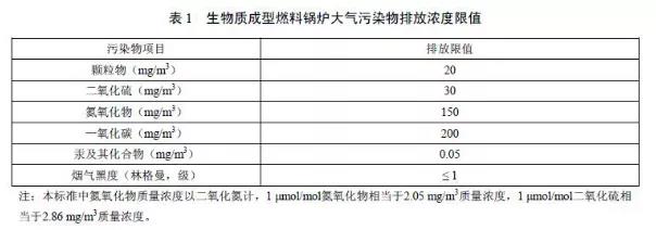 生物質鍋爐排放限值一覽表